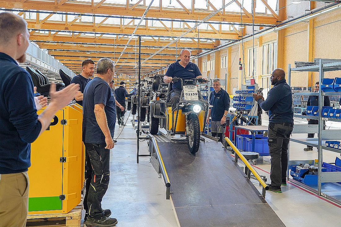 Am Dienstag, dem 08. April 2025 um 09.00 Uhr war es so weit: Das erste fertig produzierte Fahrzeug im neuen KYBURZ Gebäude rollte von der Rampe. Das Team ist stolz und freute sich über diesen besonderen Moment.