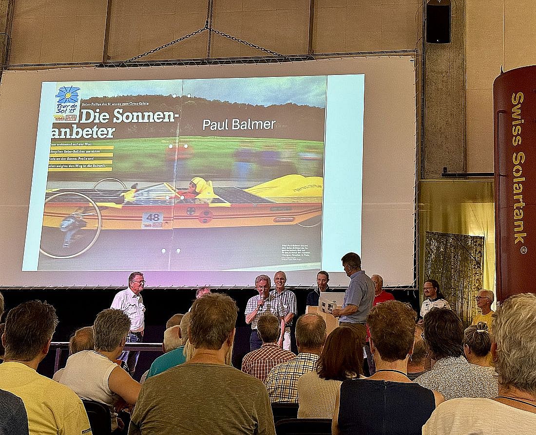 In seinem Rückblick schilderte Initiator Urs Muntwyler, wie es 1985 zur ersten Austragung kam – mit Pioniergeist, Idealismus und einer klaren Vision für eine nachhaltige Zukunft. In den Folgejahren entwickelte sich die Tour de Sol zu einem viel beachteten Ereignis, das weit über die Landesgrenzen hinaus Beachtung fand.
