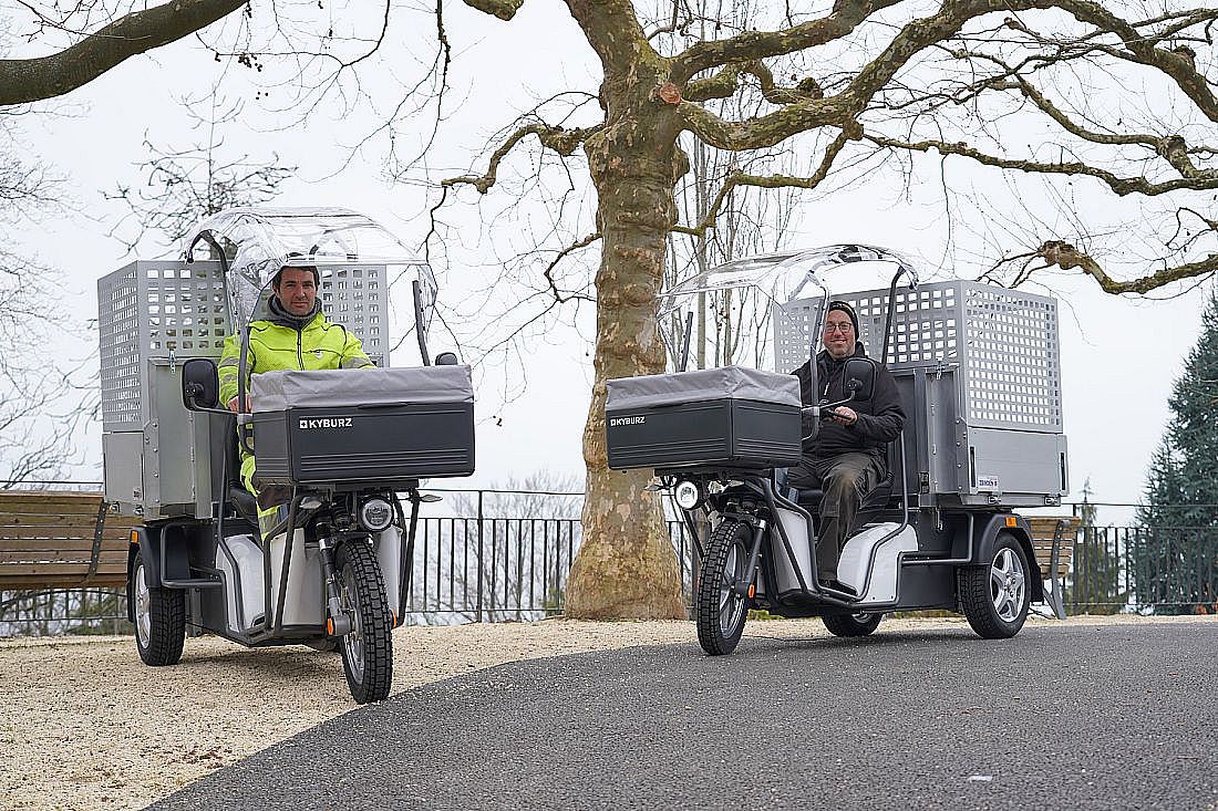 Nicolas Buchilly, Contremaître-adjoint des office des parcs et promenades, beobachtete seit Jahren Briefträger auf KYBURZ-Fahrzeugen. An der Messe «Suisse Public» kam er mit dem KYBURZ-Berater Cédric Leuba ins Gespräch. Privat ist er ein grosser Fan von benzingetriebenen Sportwagen, für den Arbeitseinsatz überzeugten ihn die KYBURZ-Elektrofahrzeuge. Der Weg zu den Friedhöfen Corcelles-Cormondrèche, Peseux und Valangin, die die Gärtner-Equipe ebenfalls betreut, erscheint mit den DXC wie eine Ausfahrt durch die Weinberge.