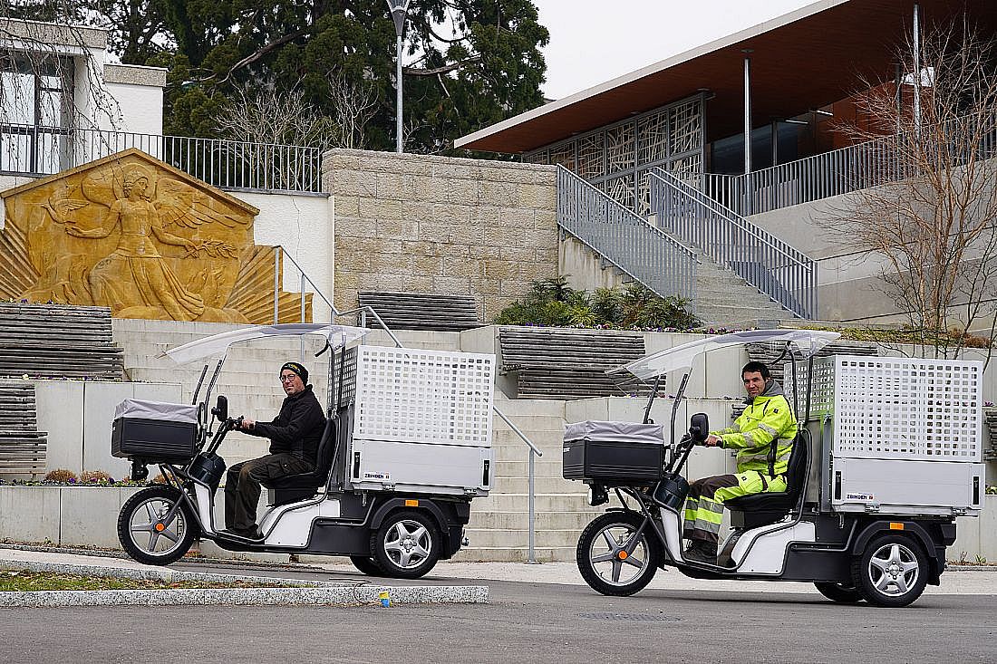 Seit über 130 Jahren existiert der Friedhof «Beauregard». Sein Name ist Programm: Der Friedhof ist ein gepflegter Park mit bester Aussicht auf den Neuenburgersee und die Alpen. Als ruhige Oase zieht er auch Menschen an, die einen Moment der Ruhe suchen. Vincent Billieux, Chef d’équipe der acht Gärtner, freut sich über die neuen Fahrzeuge. Sie haben ausreichend Kraft für die steilen Wege am Hang und fahren doch so leise, dass sich die Besucher nicht gestört fühlen.