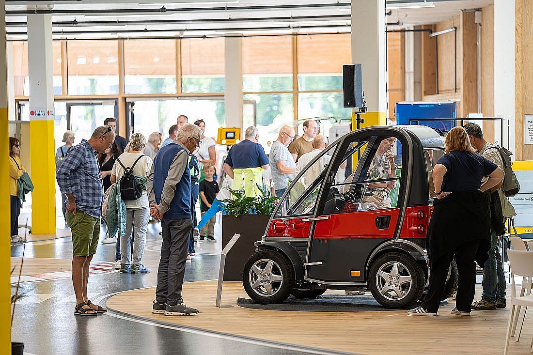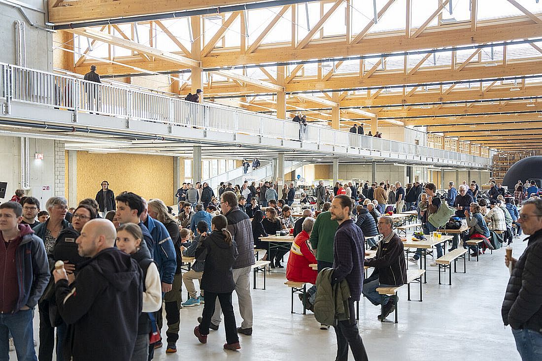 Das Angebot, das neue - und weitläufige - Gebäude geführt mit einem KYBURZ-Fahrzeug zu erkunden, kam so gut an, dass es zu Wartezeiten kam. Die angeboteten Referate und Führungen fanden ein grosses, interessiertes Publikum.