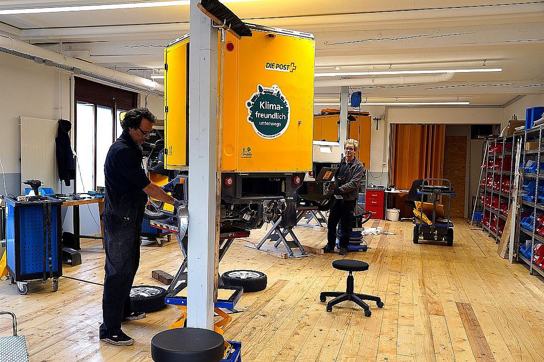 Vier Servicemechaniker betreuen in Horw mehrere Hundert Postfahrzeuge und Anhänger in den Kantonen Luzern, Zug, Uri, Ob- und Nidwalden. Dazu warten und reparieren sie Fahrzeuge von Privatkunden bis ins Tessin.