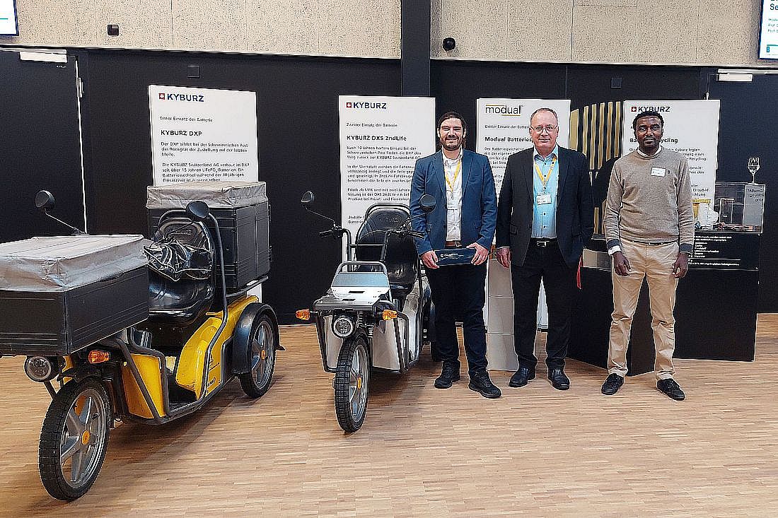 KYBURZ bekam den Preis für die Entwicklung eines bidirektionalen onboard-Ladesystem mit Wechselstrom (AC) für Kleinelektrofahrzeuge. Erstmals weltweit funktioniert ein System ohne Anpassungen der netzseitigen Infrastruktur. Das System trägt zur Stabilisierung des Stromnetzes bei und ermöglicht innerbetriebliches peak shaving (Kappen von Lastspitzen).