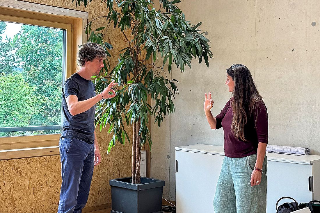 Organisiert wurde der Kurs von der Organisation DIMA und geleitet von Véronique Murk, die selbst gehörlos ist. Mit Unterstützung einer Dolmetscherin hat Véronique den Teilnehmenden gezeigt, wie die Gebärdensprache aufgebaut ist, und gemeinsam wurden einige hilfreiche Gebärden gelernt.
