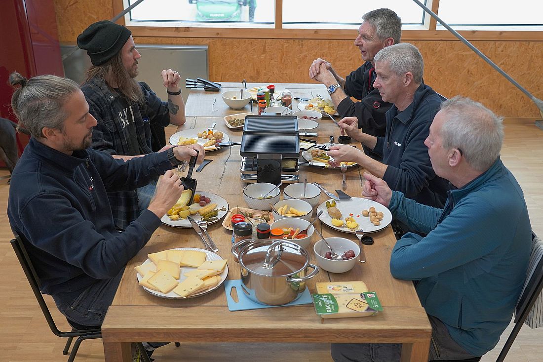The weather is foggy and cold. For the employees of the KYBURZ IT and infrastructure team, this is the perfect season for a cosy raclette lunch. The oven is available for everyone to use, and there is also a fondue pot...