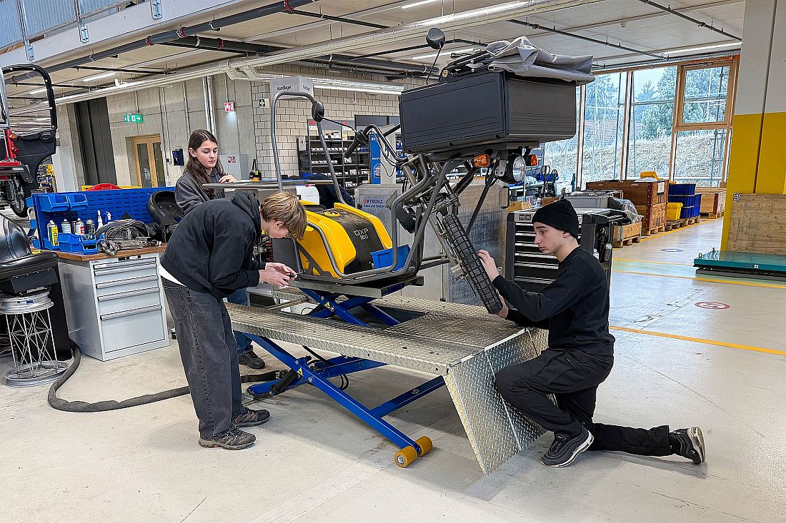Sinan Shabani, practical trainer in the service workshop, welcomed three students on each of the two mornings, showed them around the business and explained the most important processes to them. Afterwards, they went to the service workshop, where the young people were allowed to dismantle a vehicle themselves. After the dismantling, Sinan explained the inner workings of KYBURZ vehicles in a clear and concise manner.
