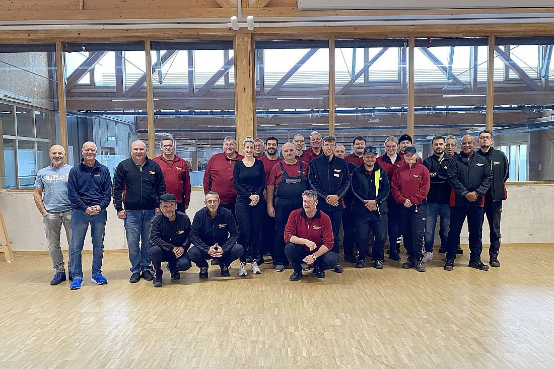 They belong to the employees of Galliker Transport AG from Pfungen. Sales consultant Dominique Hösli explains: "The idea to visit KYBURZ Switzerland AG came about because our drivers wanted to plan a team event again. I knew that you had a beautiful new building with lots of space. So I came up with the idea of combining this with a tour of your company. Our drivers got an exciting insight into your production and were allowed to test drive the electric vehicles. Afterwards, we checked the snow chains on our trucks in Pfungen and explained how to fit them safely. I received a lot of positive feedback about the tour and the test drive. Many thanks to everyone!"