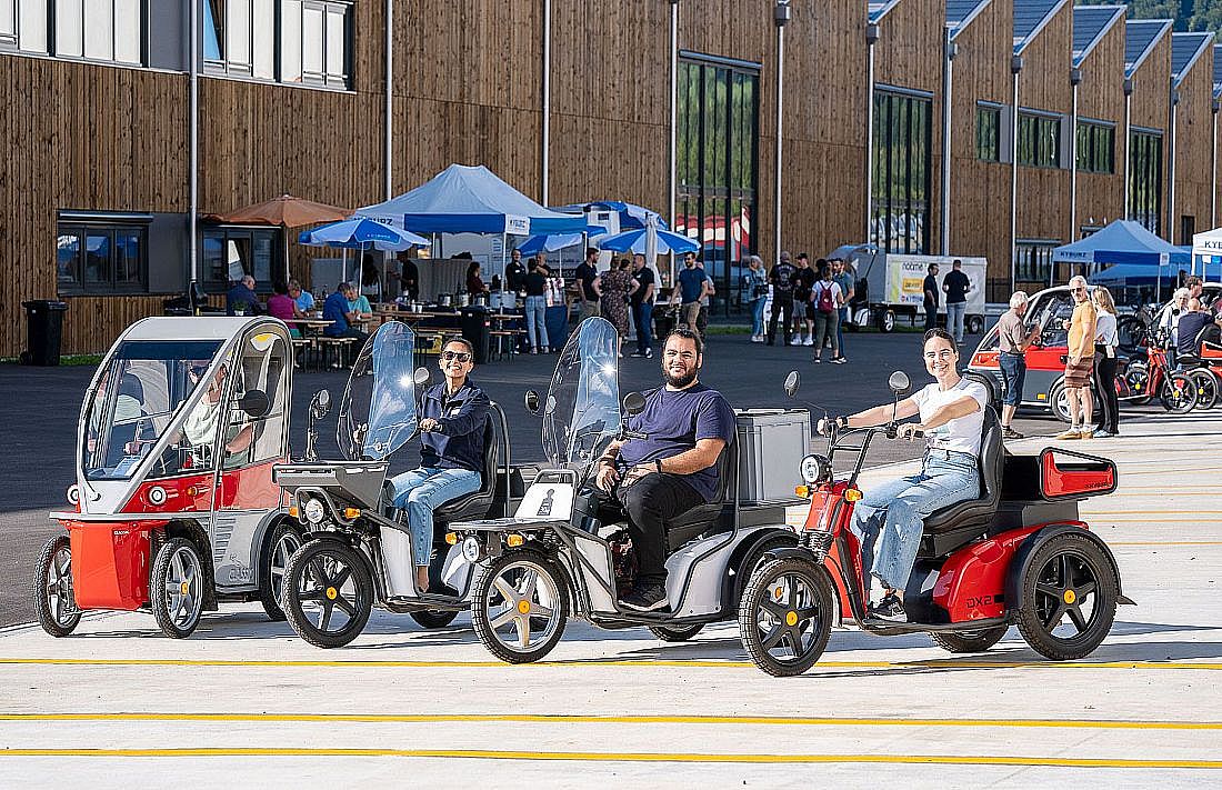 Le 29 mars 2025, les collaborateurs de KYBURZ ont fêté leur emménagement dans leur nouveau bâtiment. L'événement a débuté à Freienstein. De là, les employés, leurs familles, leurs amis et leurs partenaires commerciaux ont conduit les véhicules KYBURZ dans un convoi d'environ 80 véhicules de Freienstein à Embrach. Les eRods ouvraient la marche de cet impressionnant cortège, suivis des tricycles, des modèles PLUS et des vélos électriques MyEsel.