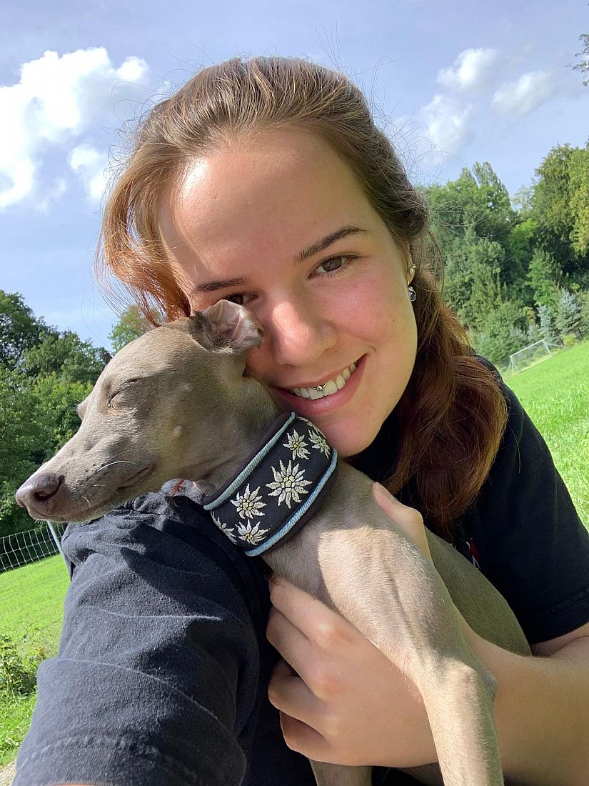 Jeanne : J'aime aller en forêt et profiter de la nature avec mon lévrier. J'aime aussi passer mon temps libre avec Valeria.